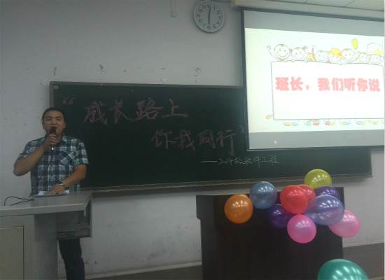 2014级各班级于弘德楼开展了大学生活中的第二次“成长记录”主题班会。学院党委书记刘军、2014级辅导员姜扬与2015级辅导员孙柳艳参与了活动。
