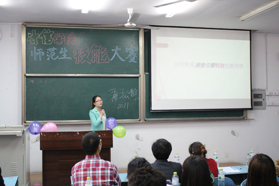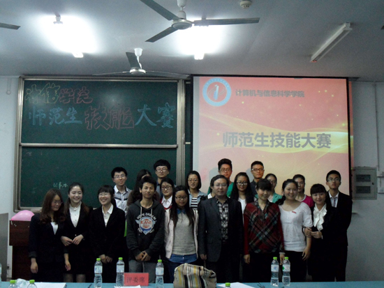 计算机科学与技术(师范)专业的同学参加大赛。比赛共分教案设计、课件制作、模拟上课、即兴演讲四个部分并进行考核,其中即兴演讲规定不超过三分钟。