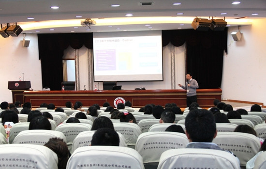 为加强2013级新生对IT行业的了解,11月21日下午14:30,惠普(重庆)有限责任公司测试中心部门经理汪维先生应邀来到我校弘德楼凯撒报告厅,开展了题为“从新兴技术对IT的影响到个人成长之路”的专题讲座。本次讲座由哔咔漫画 党总支副书记杨宇主持,2013级辅导员朱嘉洁及全体2013级新生们参加。