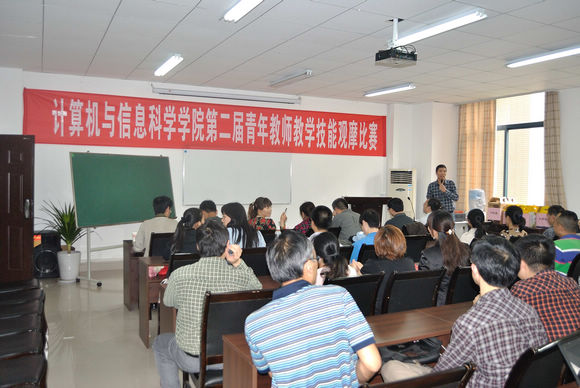 会议室如期举行。学院领导、全体教师、学生代表进行了观摩。叶青等7位青年教师经过各教研室选拔、推荐,进入当日的角逐。