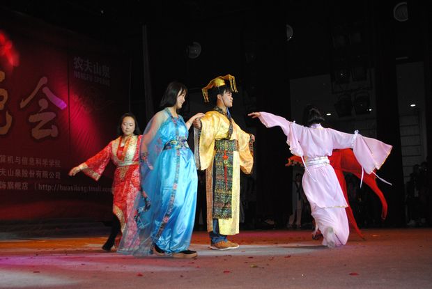 看,场上男男女女用那轻盈而娴熟的节奏,动感而激情的舞姿正在演绎着恰恰《Hole in my heart》,紧随其后的歌曲串烧《如果爱》和教师节目《格桑花》将晚会气氛推到高潮。扣人心弦的魔术《预言》,充满异域风情的《新疆舞》和古典舞《梦醉潇湘》,耐人深省的情景剧《丁香花》、《历史的天空》无一不感染在场的每一位观众,牵动着每一颗观众的心。嘻哈街舞串烧《舞客联盟》,霸气逼人rap《平民百万歌星》,优雅清新乐器合奏曲《burning》展示了年轻一代青春的曼妙多彩和无限热情,第四届团总支学生会的一场《时空之秀》更是呈现了集体创作的精美,形式新颖、妙趣横生、令人称绝。更有趣的是融合了小品和《江南style》的《计信好声音》令广大师生捧腹大笑,台下掌声阵阵,欢呼声一浪高过一浪。值得一提的是,晚会还特别设置了与观众游戏互动和微博互动的环节,同学们积极参与,充分体现了哔咔漫画