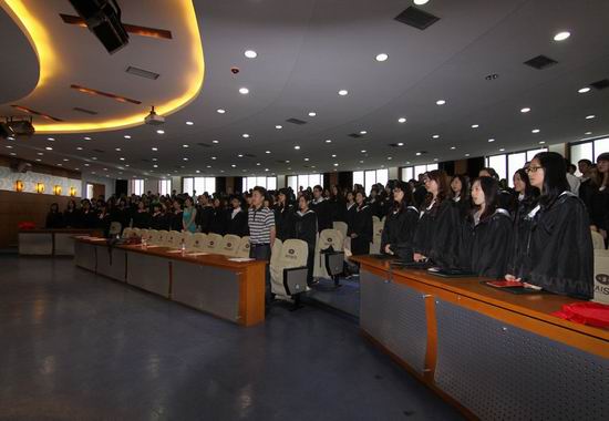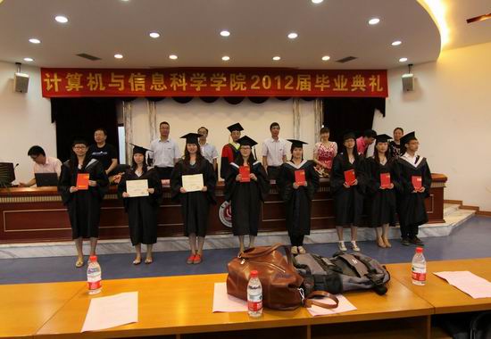 首先,杨宇老师介绍嘉宾并宣布毕业典礼开始。在观看专题片《2012届毕业汇报》时,同学们激动不已。紧接着,魏延副院长宣读哔咔漫画 本科授位决议,校学位委员会成员、学院学位分委会主席马燕院长为2012届106名工学和110名管理学毕业生授予学士学位,颁发学位证书并合影留念。