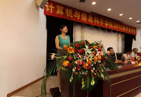 “祝你们一路顺风、前程似锦!”。学生代表孙柳艳上台代表毕业生发言,充满了对母校的不舍和热爱。随后,主持人颁发校友联络员聘书、学院院徽设计奖、以及2012届毕业生代表为学院捐赠纪念品。
