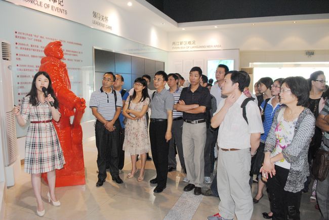 下午2:00左右,校车到达重庆两江新区规划展示厅,受到两江新区管理委员会工作人员的热情接待。参观过程中,解说员为学院领导、师生详细介绍了两江新区的成立背景、功能定位、交通区位、产业布局等方面的情况。两江新区作为我国内陆唯一的国家级开发开放新区,是继上海浦东新区、天津滨海新区之后的第三个国家级新区,包括江北区、渝北区、北碚区部分区域、两路寸滩保税港区和北部新区。两江新区的产业以“一心四带”的产业空间布局,其中的“高新技术产业带”正是与计信学院各专业相关的企业集聚地,解说员说道,未来几年里,“高新技术产业带”将会不断创新开发开放模式,聚集更多的高新企业,就业潜能巨大。