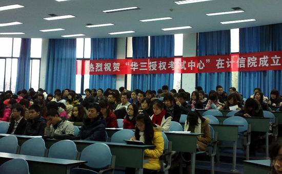 成功获得华三公司授权,成立了“华三授权考试中心”。2011年12月9日下午在5205教室,隆重举行了华三授权考试中心揭牌仪式。学院院长马燕教授和学院党总支刘军书记出席仪式并为“华三授权考试中心”揭牌。