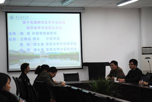 王艳霞博士以及重庆大学计算机学院戴刚、黄鑫两位博士为大家做精彩的讲解与指导。全院研究生和部分本科生参加了本次交流会。
