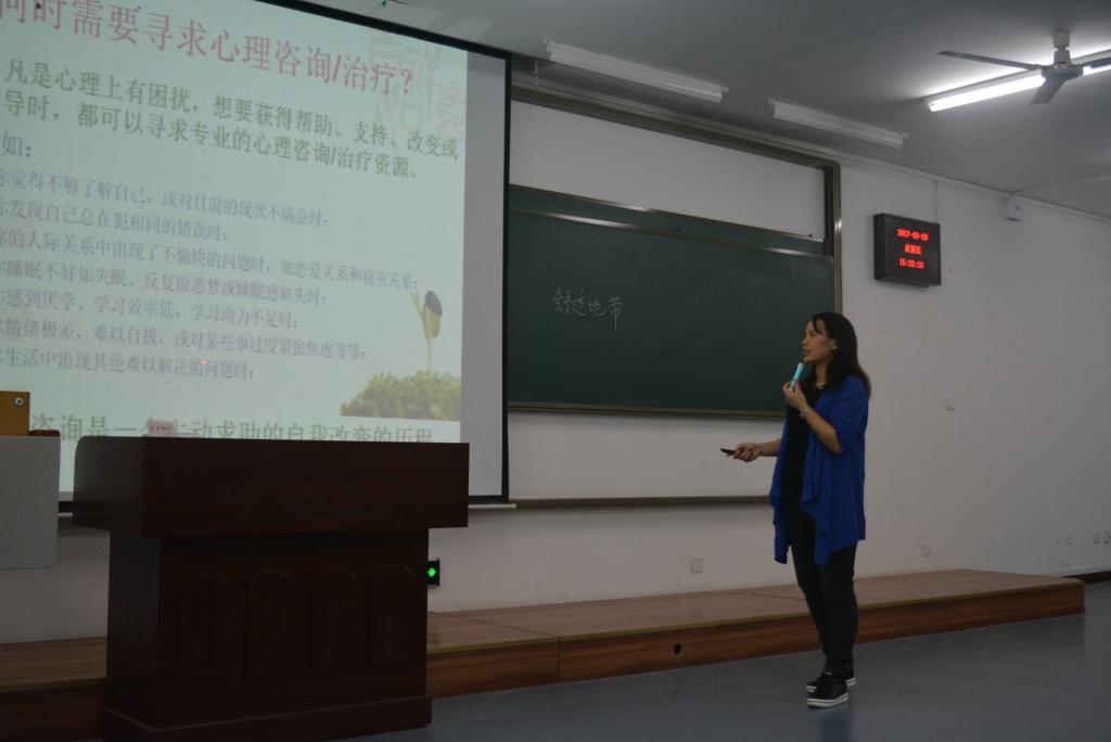 在励志楼2315举办心理健康教育讲座。资深心理学教师张兴瑜老师担任本次讲座主讲人,2017级辅导员朱嘉洁老师及2017级全体学生参与本次讲座。
