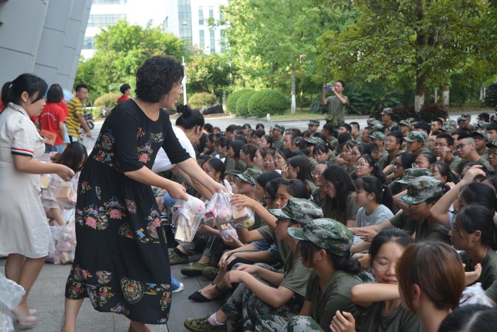 党委书记陈兰、院长魏延、党委副书记何东、副院长李世宏、团总支书记钟华及19级辅导员孙柳艳、魏僚带领团学会部分成员为烈日下的新生们送去温暖的慰问。