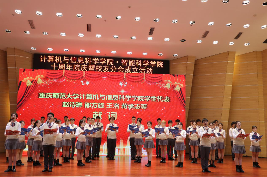 纪委书记肖应红教授,中国人工智能学会副理事长、重庆人工智能学会理事长、重庆邮电大学副校长王国胤教授,全国高等学校计算机教育研究会师范教育分会副理事长、南京师范大学计算机与电子信息学院院长吉根林教授、副院长蔡继明教授,重庆计算机学会秘书长、重庆大学曾一教授,中国计算机学会重庆分部主席、重庆大学大数据与软件学院党委书记文俊浩教授,重庆交通大学、重庆工商大学、重庆三峡学院等计算机学院领导。还有企业界嘉宾腾讯教育、重庆致业源科技有限公司、中渝智能设备(重庆)有限公司、重庆门罗机器人科技有限公司代表。计信学院成立时相关联的三个学院的领导数学科学学院党委书记杨光平、物理与电子工程学院党委书记胡先成、经济与管理学院副院长喻科以及历任学院领导刘军、马燕、李月臣、李晓燕、杨宇、杨晓红和130余名校友、学院退休同志、全体教师和部分学生代表出席了会议。