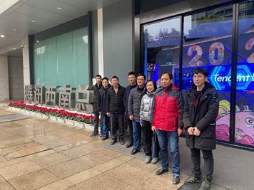 2021年1月27日,由学院院长魏延带队,副院长李世宏、院长助理冉瑞生、计算机科学与技术、软件工程和智能科学与技术的专业负责人陈勇、张杨和曾绍华教师,以及崔少国老师一行,前往位于重庆渝北区的腾讯西南总部考察并洽谈合作事宜。此次考察受到腾讯西南总部及其合作伙伴重庆致业源集团公司的热情接待。腾讯教育西南区域总监高宇,致业源集团公司CEO任翔、CMO刘伟和COO吴娟和陪同考察并参与洽谈。