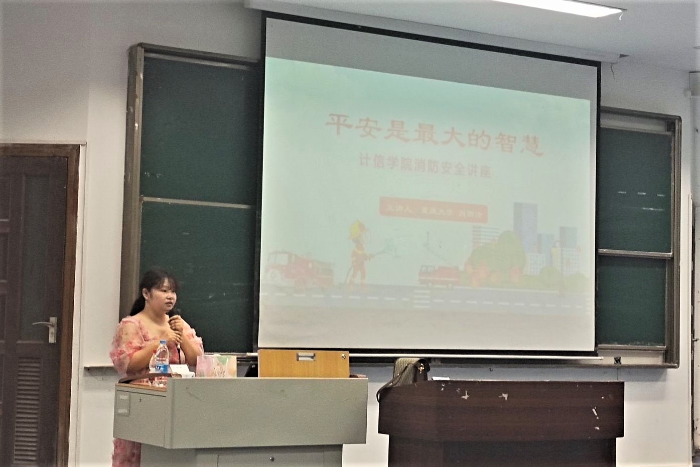 同时开展线上线下消防安全知识宣传。6月14日晚6点,由重庆大学保卫科科长、重庆大学消防宣传中心主讲教师肖雨诗老师、重师消防科科长张国建主讲的 “平安是最大的智慧”消防安全讲座在2018级、2019级、2020级中陆续开展。从消防意识的培养、消防安全的维护和营救、日常行为规范等方面对学生进行了引导和培训。此次消防安全讲座,加强同学们对消防知识的学习同时,让同学们对消防器材有了更直观的了解。