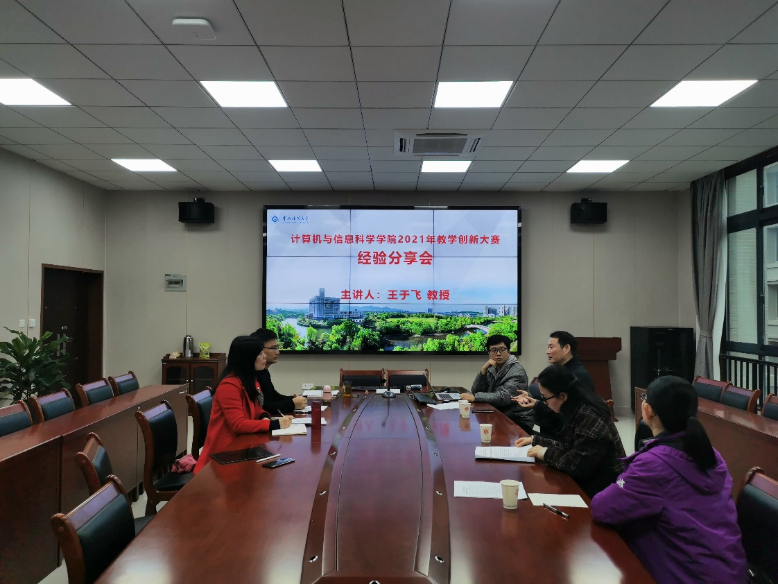 为了推进学院一流课程建设和教学创新改革。 2021年12月10日,学院在致用楼302会议室举行了2021年教学创新大赛经验分享会,会议邀请了我校文学院王于飞教授作为专家进行指导。本次会议由学院陈兰书记主持,学院新进的年轻老师及学院部分教指委委员参会。