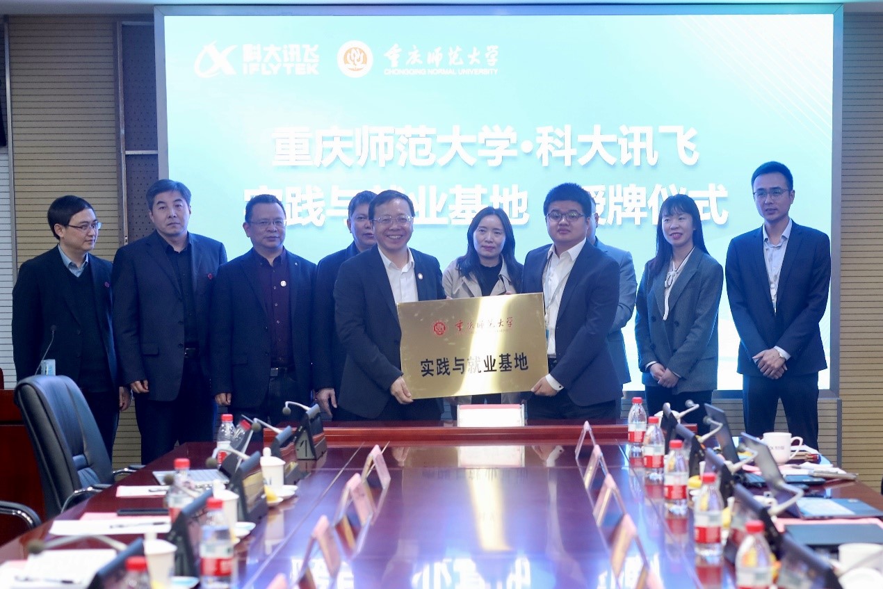 实践与就业基地授牌仪式。科大讯飞高教人才培养业务总裁胡江院、西南区市场总监曾娟等陪同参观并出席签约授牌仪式,高教人才培养业务副总裁兰明博带领参观。