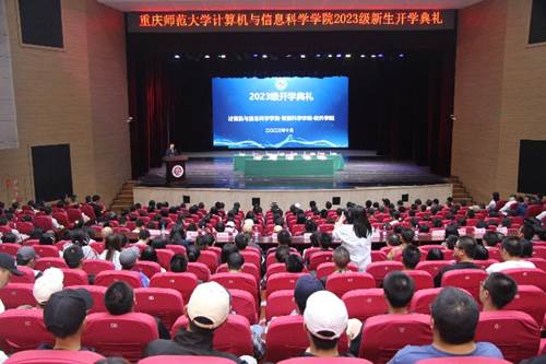 2023级新生开学典礼在校友会堂音乐厅隆重举行。学院全体领导、各科室负责人、系主任和全体辅导员参加,典礼由学院党委副书记李若岩主持。