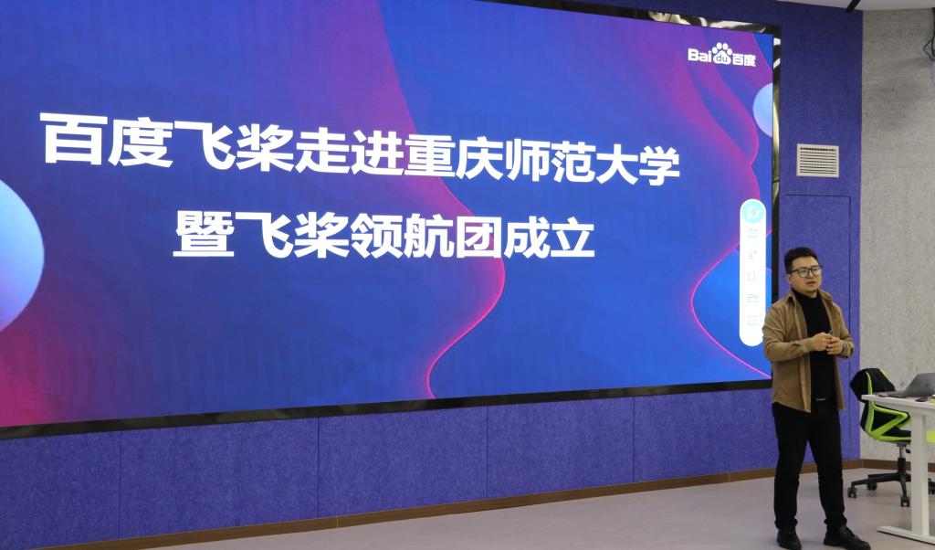 随后,领航团长张青军以《百度飞桨——大学生的自我提升引擎》为题,从飞桨平台简介、助力专业技能提升、推动AI场景学习、竞赛增强软实力这四个方面向同学们讲述了如何利用百度飞桨平台更高效的提升个人能力。