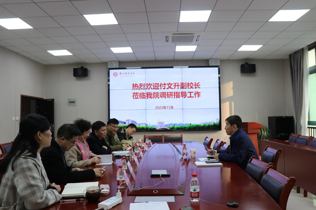 11月22日,副校长付文升到学院走访调研。学院全体党政领导、院长助理和各科室负责人参加。