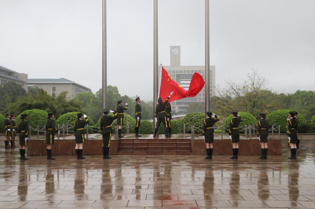 举行以“奋进新征程,建功新时代”为主题的升旗仪式。出席此次仪式的有学院领导班子、分团委书记钟华、全体辅导员和2023级学生。升旗仪式由党委副书记李若岩主持。