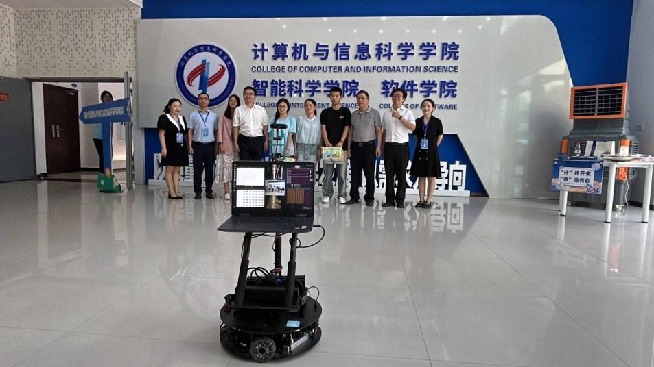 本次迎新活动专设机器人拍摄入学照片环节,由学院智慧教育实验室师生开发的机器人小六给新生们一份计信特色的入学礼。学院学生自研的迎新数据系统实时系统,将报到流程以数字化的方式进行呈现和分析,获新生和家长好评。