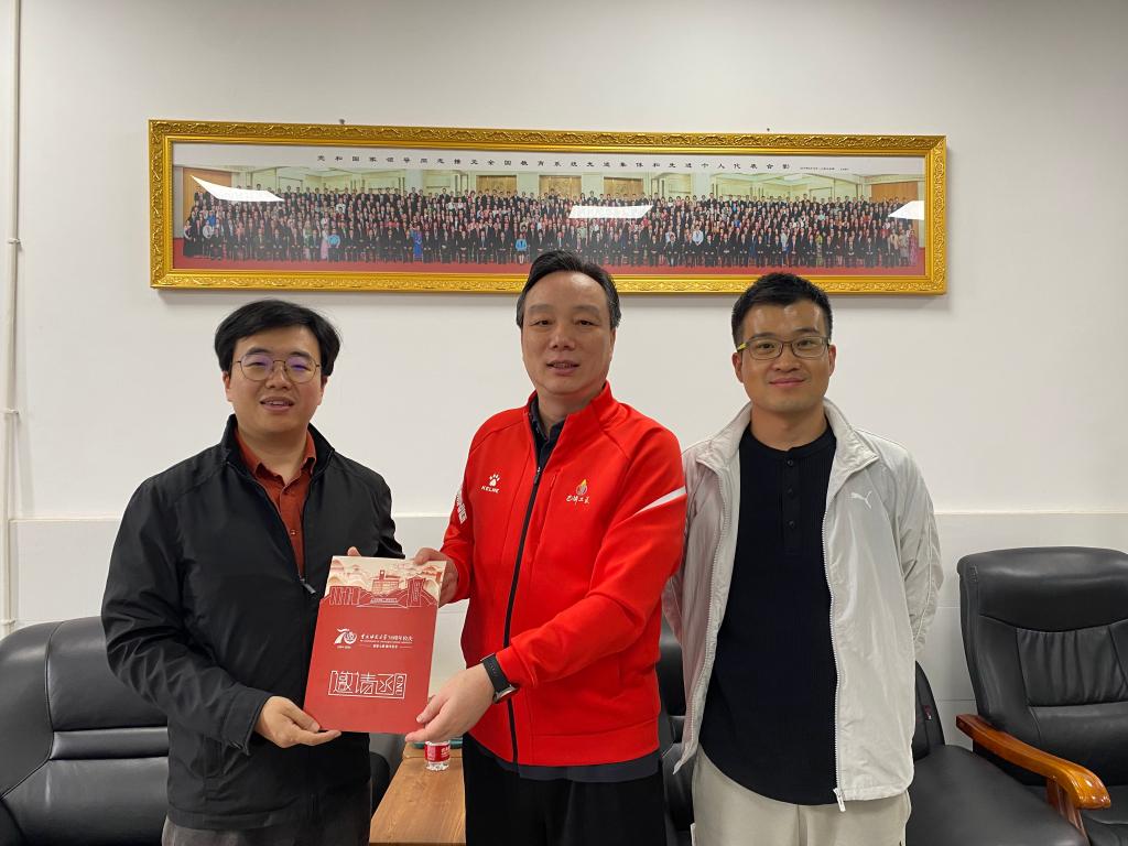 副院长冯骥和辅导员郝占章,代表学院走访了1995级计算机科学与技术专业优秀校友,现重庆电子工程职业学院人工智能与大数据学院院长武春岭。