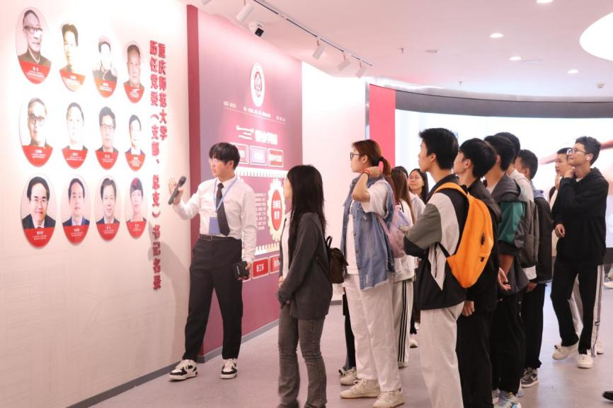 同学们在讲解员的带领下,回顾了重师70年的发展史,进一步了解了重师精神的源起和发展,纷纷表示深刻感受到了学校深厚的文化底蕴和精神传承,也增强了对学校的认同感和归属感。