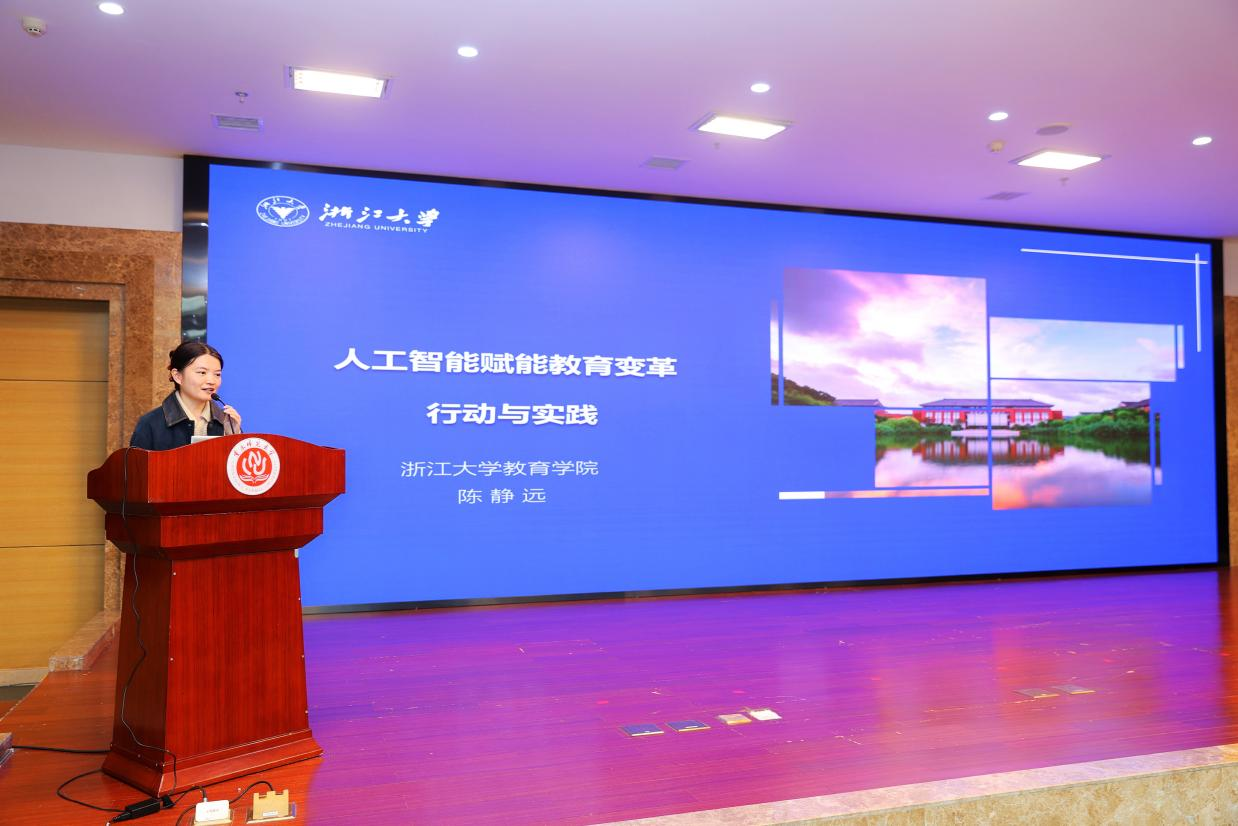 浙江大学教育学院陈静远研究员作了题为《人工智能赋能教育变革行动与实践》的报告,她谈到,人工智能具有至小有内、至大无外的特点,呈现多学科交叉综合、渗透力和支撑性强、高度复杂以及技术属性和社会属性高度融合等内禀,介绍了从“厚基础、强交叉、养品行、促应用”角度介绍人工智能课程在计算机课程中的起源和现状,计算机领域本科教育教学改革试点工作计划(“101”计划)的基本情况,以及浙江大学人工智能赋能教育实践的有关情况。
