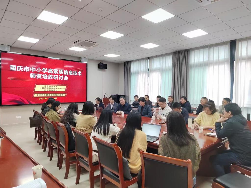 在致用楼302会议室成功举办了2024年重庆市高中教师信息化能力培训座谈会。来自全市二十多位信息技术学科的教师参加了此次座谈会,学院魏延院长、冯骥副院长、罗凌老师、吕佳老师、陈代江老师和牛彦敏老师参加会议。