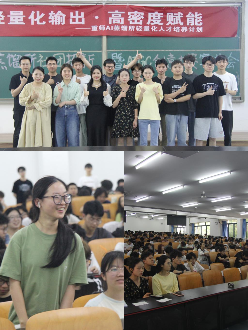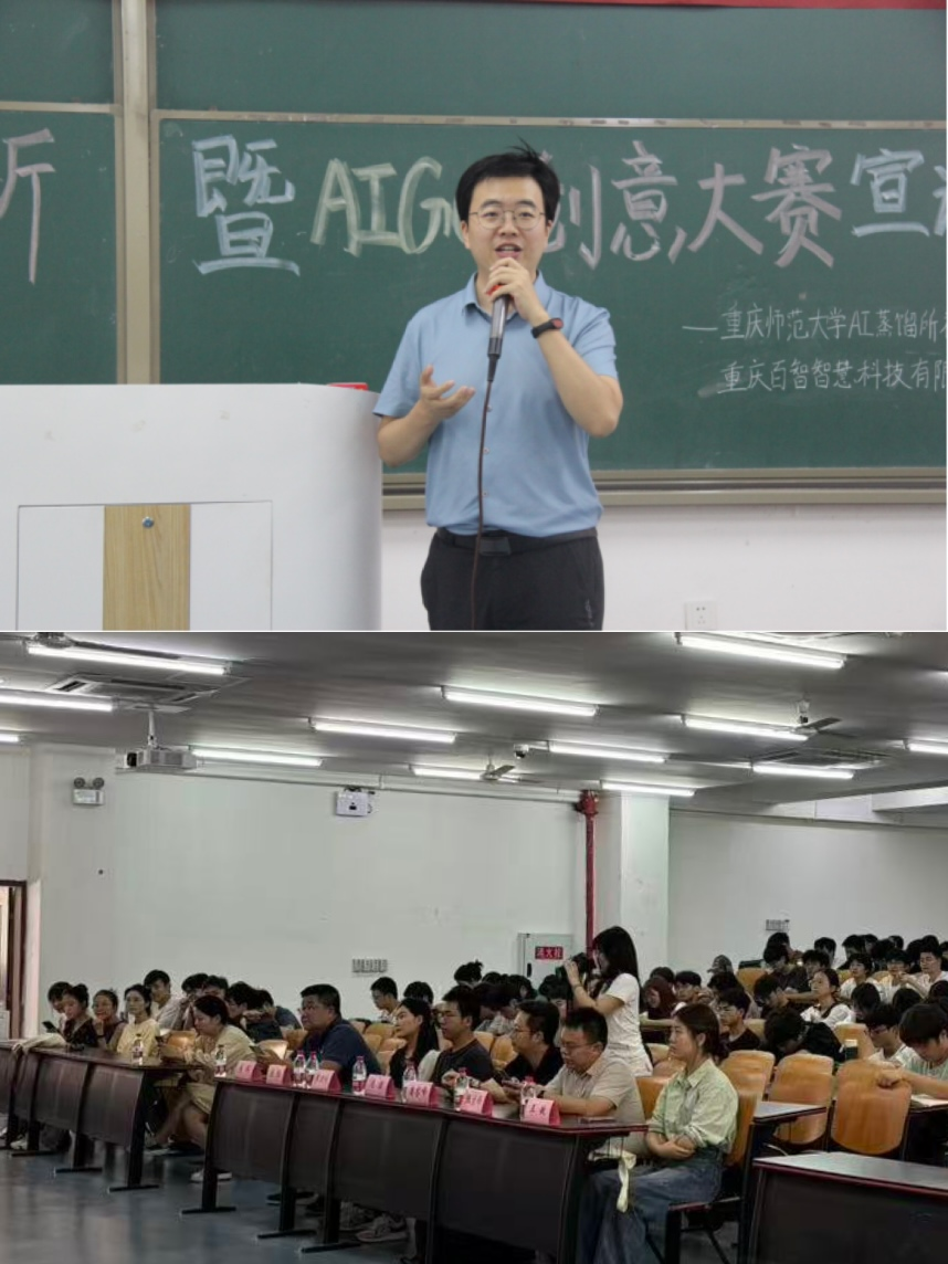 副院长冯骥、计算机科学与技术系主任牛彦敏、软件工程系主任肖颗、智能科学与技术系主任张文锋;重庆百智人才教育经理潘睿峰、人才教育商务经理唐杨,技术研发中心技术专家张世林、产品专家王敏、AI蒸馏所负责人王敏。学院三百余名大一学生参加了本次活动,活动由刘维炜同学主持。
