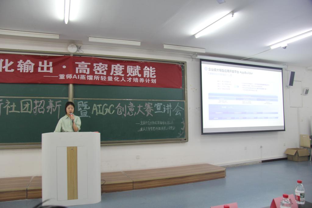 在砺志楼T2113教室举办了“AI蒸馏所重师站招新暨AIGC创意大赛宣讲会”。活动由哔咔漫画