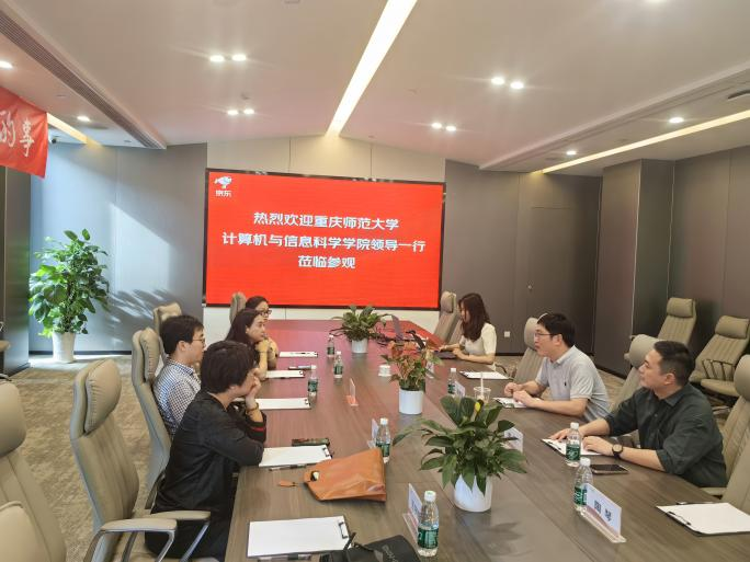 随后,双方就校企合作进行深入交流。京东科技京行西南业务总监窦威锋、京东科技京行重庆业务总监高新焱、京东(重庆)数字经济产业园负责人陶琴、京东科技产教融合生态合作伙伴负责人袁丹等参加会议。双方就项目共建、校企合作及人才培养举行了座谈交流会。窦威锋对重师计信学院的来访表示欢迎,并介绍了公司现状与人才需求。冯骥介绍了学院基本情况,并就产教融合项目、课程共建及实习实训合作方式提出了具体方案构想。会场交谈融洽,双方从商务智能、跨境电商、电商运营三方面初步商定了合作框架和实施方案。