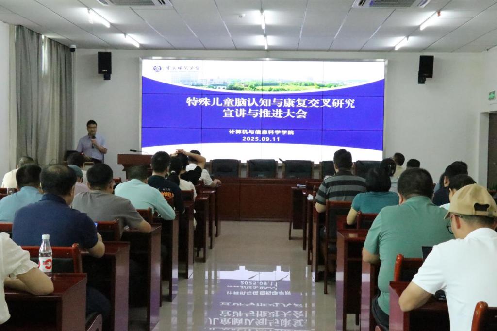 召开了学科交叉融合“再”行动大会。崔少国副院长围绕特殊儿童脑认知与康复交叉研究对学校学科交叉融合发展战略进行了全面宣讲,并对计信学院前期基础、面临机遇、未来发展进行了深入剖析,并提出学科交叉“再”行动倡议。大会在致用楼319召开,全院教师参加。