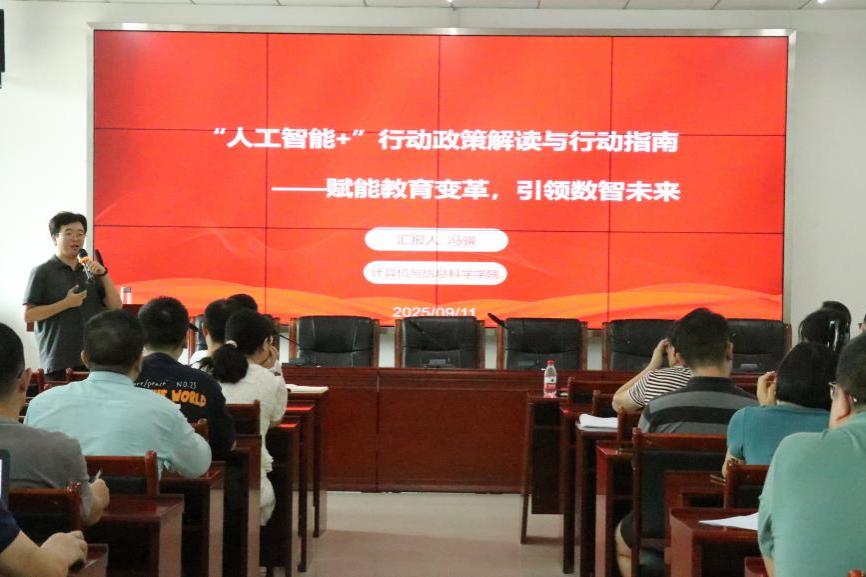 召开《国务院关于深入实施“人工智能+”行动的意见》(后简称《意见》)解读研讨会。副院长冯骥以《赋能教育变革,引领数智未来》为题进行专题宣讲,系统阐释了国家人工智能战略的核心要义,深入分析了学院在AI领域的先发优势与独特布局,与老师们共同探讨了人工智能+行动的发展路径。