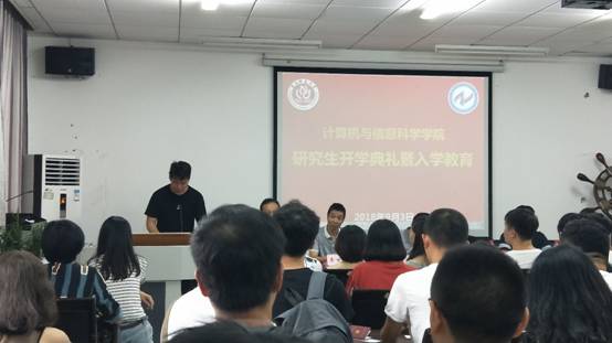 随后硕士生导师唐万梅教授作为导师代表也表达了对新同学们的期许。告诫同学们踏实专研,开发潜能,谱写属于自己的丰富人生。新生代表杨杰之同学发言,表示定当努力开拓,攀登学术高峰,努力成为一名优秀的计信人。
