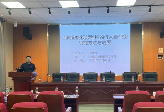 张文锋的报告题目为面向智能视频监控的行人重视别方法与进展。在报告中他就行人重识别的定义、应用领域等进行介绍,并以表征学习和度量学习为切入,介绍复杂真实场景下行人重识别方法的研究进展。