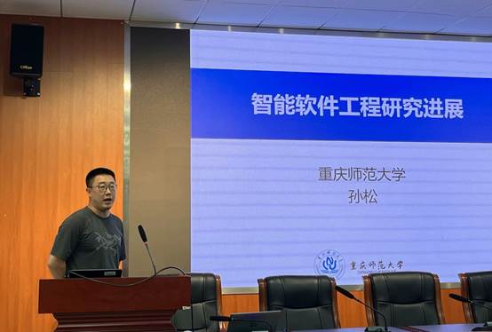 论坛伊始,罗老师分别介绍了孙松博士和孙晓宁博士的学术背景、研究方向等。随后,两位博士教师围绕其研究方向及研究成果依次进行汇报。孙松博士作题为“智能软件工程研究进展”。他围绕基于软件生产模式、环境和技术,详细分析讲解了在智能软件工程领域的研究进展,包括智能化软件缺陷检测与定位、软件变更解析、大规模代码搜索、智能运维等关键技术与应用实践。