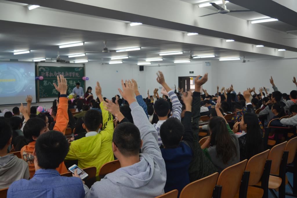 大会还通过各部门精心制作的PPT展示了部门的职能和特色。无论是以“静、跃、评、存”为风格的组织部;抑或用情怀宣誓,书写感人文字的通讯部;还是一首《一家人》唱出温暖情怀的人力资源部等,各部门都充分展现出了团学会的风采与担当。大会中的才艺展示和互动环节,也增进了成员间的了解,将大会氛围推向高潮。