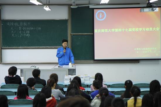 于在弘德楼5104召开了第47期党校学习动员大会,学院10级、11级辅导员以及全体入党积极分子参加会议。会议由学院团总支副书记张敬主持。