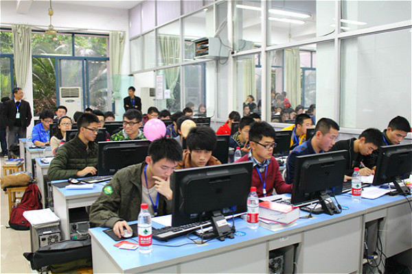 比赛在12:40正式开始。在讲解了比赛规则之后,各位参赛同学也正式进入答题环节。比赛共计8道题,时长为4个小,它强调参赛者计算机程序设计语言、计算理论等相关知识及综合应用能力。比赛为团队式比赛,三人组成一个团队,共同答题,在规定时间内答题数量最多的团队获胜。在比赛过程中,各位参赛同学信心十足,他们敲键盘的速度之快,不得不使人惊叹,在电脑面前的他们,个个都彰显出了非凡的技术水平和扎实的知识储备。