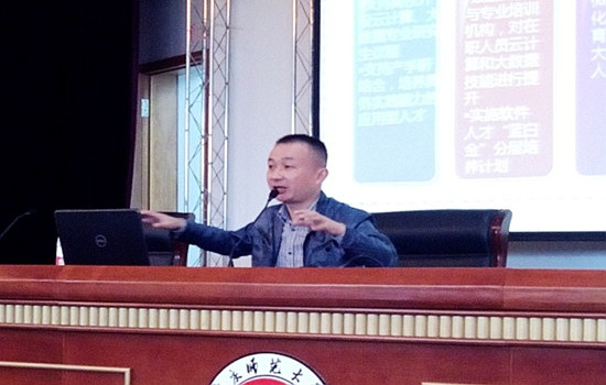 居琰博士以生活的实例与丰富的人生经历引导同学们理解“大数据”——对大量数据进行挖掘,给出其多样化、快速化、大量化、价值容量低四大特征。他提到,在校大学生所学主要为基础知识,较IT行业发展相对滞后,同学们要学会架构知识模型,采用云计算及“大数据”架构,关注未来发展趋势。居琰博士进一步提出,重庆地区的发展目标就是“大数据”引领世界变革,带动全球经济繁荣,以“云计算”和“大数据”为发展核心,也就是“云端计划”。而产业发展的关键要素在于通信保障、电力保障、人力保障及市场需求,场下的同学们顿时恍然大悟,领悟颇深。