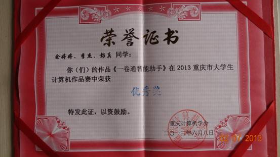 据悉,这次大赛由重庆计算机学会主办、西南大学承办的一项重庆市重要的计算机设计大赛。本次大赛旨在为了推动重庆市高校计算机教育事业的共同发展,展示重庆市高校计算机类专业的教学成果,增进各界对计算机人才的了解,促进重庆市高校计算机教学的互相交流,进一步提高重庆市高校计算机教育教学的质量。