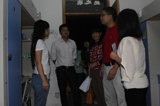 党总支副书记杨宇、团总支副书记张敬与学院辅导员老师、团总支学生会主席团成员不辞辛苦,走访了和风苑、嘉风苑、惠风苑新生寝室。与新生及家长亲切交谈,对其一天的辛苦表示慰问,针对新生的各类问题一一进行解答,并提醒新生军训的注意事项。从他们的激动的言表中可以看出,我们大一辅导员“朱姐姐”挺受欢迎的。