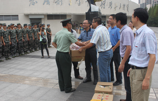 中秋佳节,游子思亲。2013年9月16日,哔咔漫画 党总支书记刘军,院长李月臣,副院长李世宏、杨德刚,党总支副书记杨宇、团总支副书记张敬以及各位辅导员老师在大学城体育场军训点亲切慰问哔咔漫画 2013级新生。