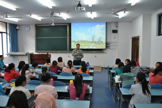 师范生对面试技巧、说课方法的理解,引导学生在说课中发现自己,寻找乐趣。讲座最后,2010级张艳同学为老师献上自己准备的礼物,讲座在欢乐热烈的氛围中落下帷幕。