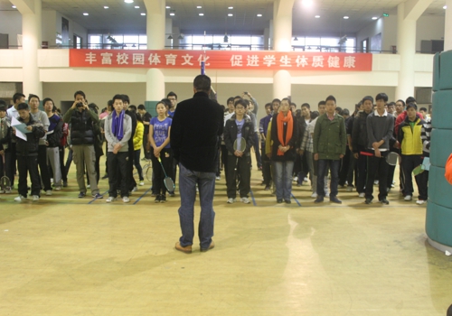 第一届三好杯大学生羽毛球大赛”在羽毛球馆火热开幕。据悉,大赛共设定男女混合双打、男子双打、女子双打、男子单打、女子单打五个项目,比赛结果将产生团体奖和个人奖,获奖者将获得奖牌、荣誉证书及相应奖金。本次大赛由我校各个学院派代表参加,体育学院院长出席开幕式并致开幕词。