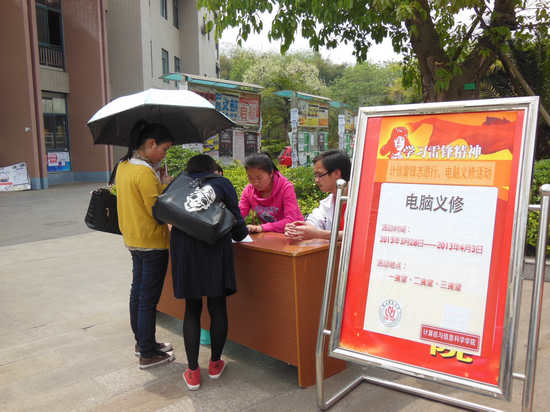 活动过程中,PC加油站的干事们热情、细心地为有需要的同学、老师们解决电脑问题,如无法连接无线、开机速度慢、有关显卡、驱动等问题,并主动耐心地讲解各种电脑常识,还动手师范如何维修、维护自己的电脑,真诚热心的服务态度得到了广大学生和老师的一致认可。