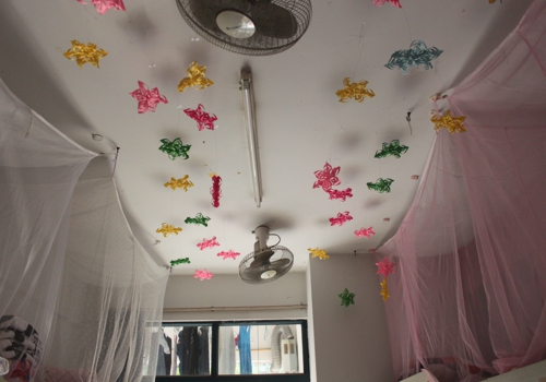 踏入一间间风采各异的寝室,展现在眼前的是令人耳目一新的寝室装饰,或清新田园;或艺术感十足;或温馨舒适;或简单精致;或淡雅脱俗。同学们各展所长:精美喜庆的手工剪纸、恢弘大气的书法艺术、温馨浪漫的千纸鹤、充满节日气息的彩色气球……同学们亲手制作出的一个个匠心独具的手工艺品挂满房间。此外,窗明几净的寝室环境、蕴意深远的寝室名称和吉祥物、醒目的温馨提示和寝室公约、和谐的寝室气氛无不体现哔咔漫画