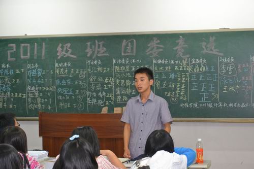 11级新生班委选举活动于图北楼多个教室全面展开,院学生会干部成员担任各选举现场的主持人,全程鼓动、监督各负责班级的选举活动。