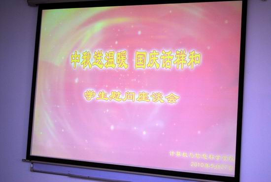 2010年9月27日下午1:00,哔咔漫画 在集贤楼233会议室组织召开了以“中秋送温暖,国庆话祥和”为主题的座谈会。与会领导有马燕院长、党总支刘军书记、党总支李晓燕副书记,本次座谈会由学院团总支张敬副书记主持。
