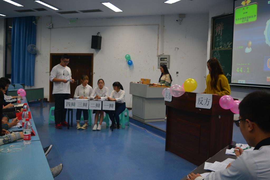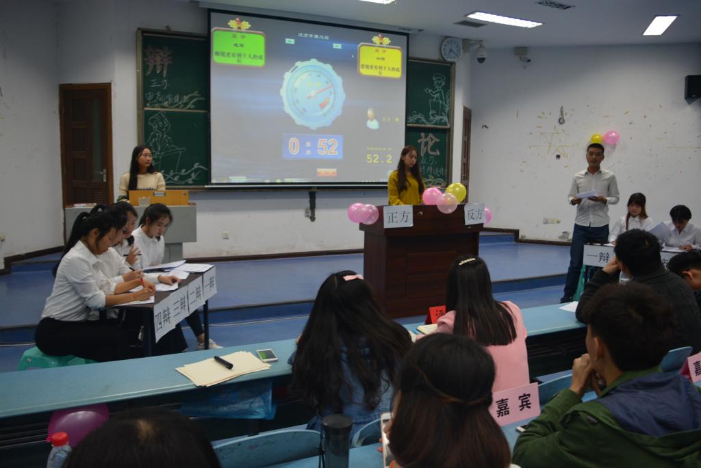 据悉,本次决赛分上下两场,第一场由电子商务专业及计算机科学与技术(职教师资)班根据“顺境还是逆境更有利于人的成长”为辩题展开,顺境逆境作为一个热门话题,在双方激烈辩论下,更显其令人思考的重要性。正方辩手经据典、字字珠玑,而反方辩手面对攻势临危不乱,主要从精神方面阐述,并且利用正方的所举事例强有力击倒正方。第二场比赛由计算机科学与技术专业及计算机科学与技术(中美合资)班以“当今中国应不应该延长孕妇产假”为题展开激烈角逐,中美班巧用四两拨千斤的方法,一次次的化险为夷,一次次击破对手的观点,最终获得了本次“迎新杯”辩论赛的冠军。