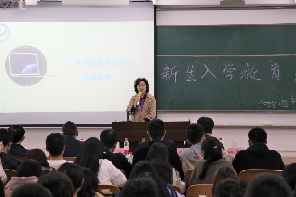 的相关情况,让20级新生们充分了解到未来四年所处的环境,告诫新生们要有目标、有理想,多参加课外活动,珍惜大学四年时光。紧接着,由新生代表彭雁丰发言,他的发言展现着新生的激情与活力,和对未来四年在计信学习生活的美好憧憬。而教师代表朱德利老师,则从自身教学经历出发,教导新生们在学习的道路上脚踏实地、求真务实;对专业保持精益求精的工匠精神,心怀感恩,珍惜当下。随后,由李世宏院长为在场新生介绍学院本科教学情况,何东书记介绍学院学生工作的开展情况,由此鼓励同学积极参加学生活动。最后由学院党委书记陈兰进行总结发言,陈兰书记寄语同学珍惜大学学习与生活,既要做好人生规划,也要肩负担当精神,会议在陈兰书记的祝福中拉下帷幕。