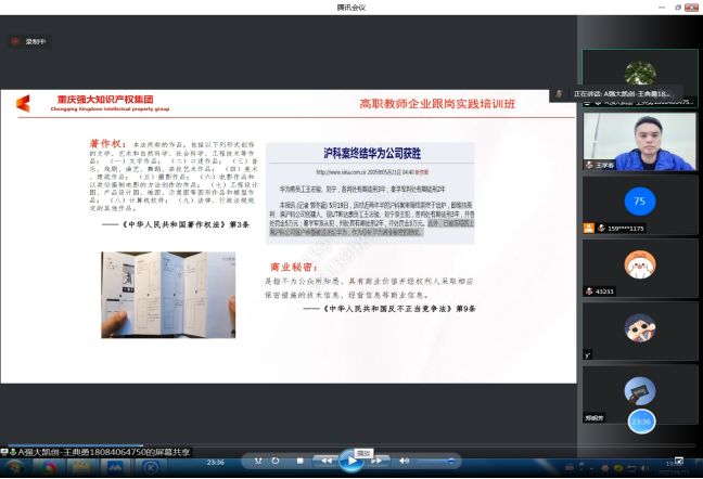 于4月21日19:30开展了“知识产权”线上讲座,学院创新创业基地和创新创业团队参加了此次培训。